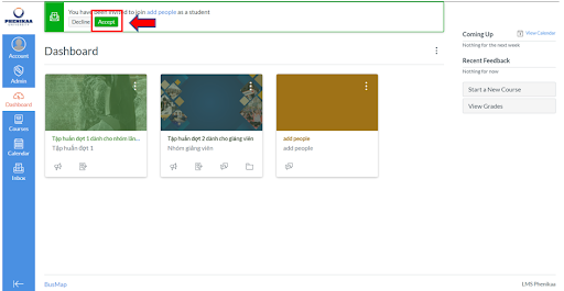 Bước 2: Chấp nhận lời mời tham gia khóa học: