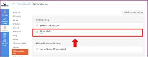 Bước 1: Tại giao diện nội dung giảng dạy chọn bài tập cần làm