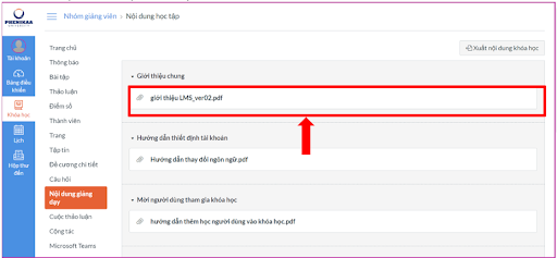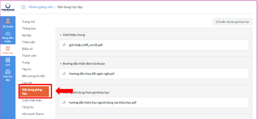 Bước 1: Chọn vào chức năng Nội dung giảng dạy