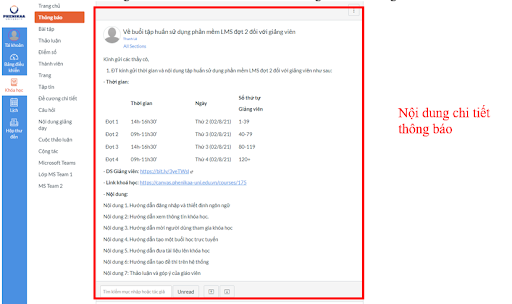 (7) HƯỚNG DẪN XEM VÀ PHẢN HỒI THÔNG BÁO TRÊN LMS