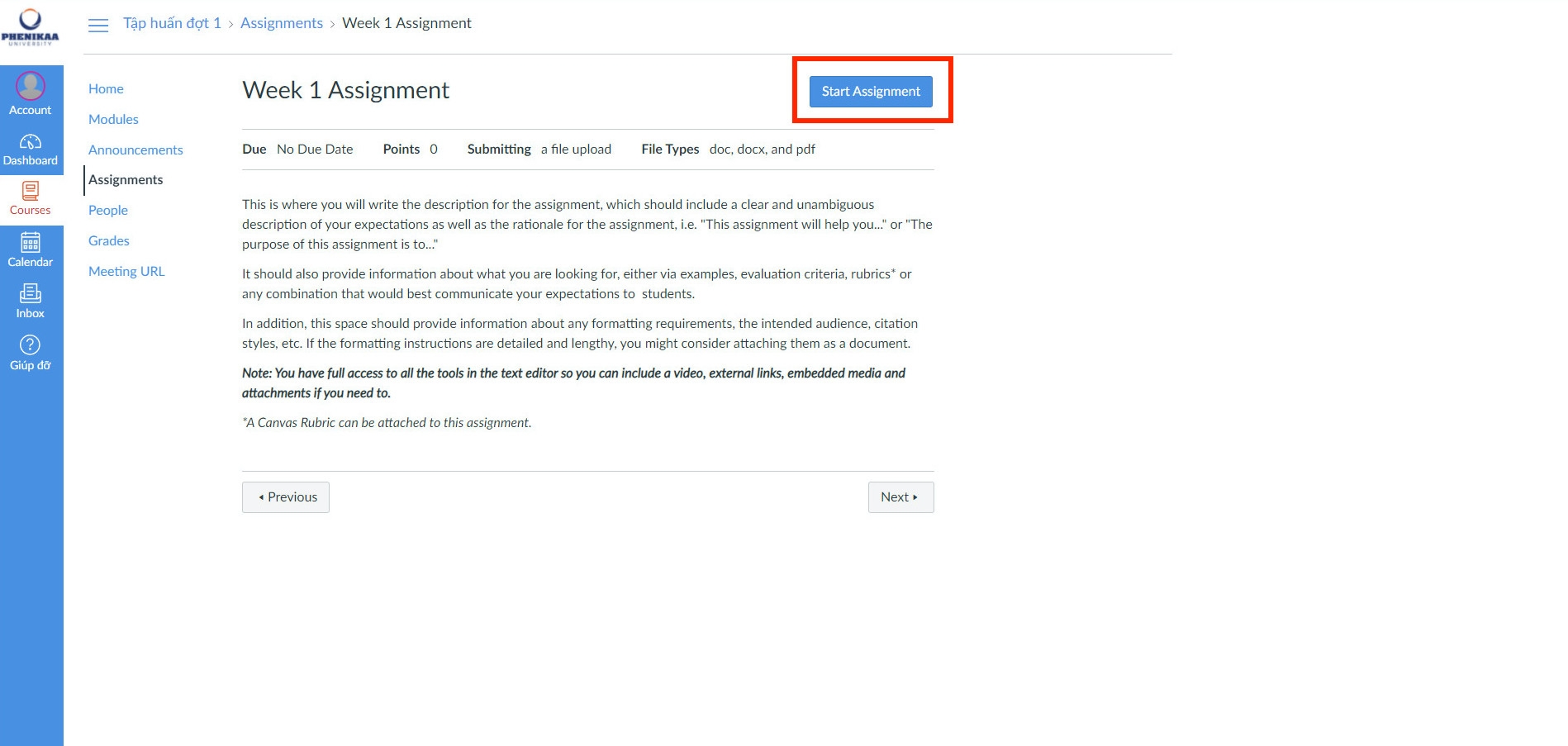 Bước 3: Chọn “Start Assignment” để bắt đầu nộp bài tập
